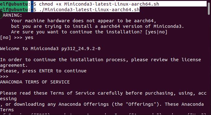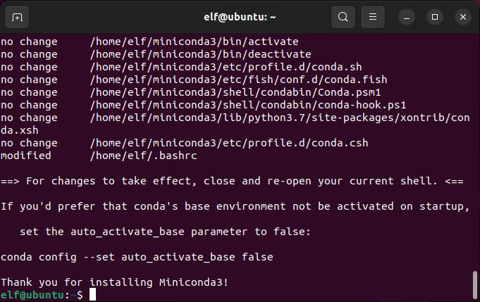 elf@ubuntu:~$ ./Miniconda3-4.7.12.1-Linux-x86_64.sh