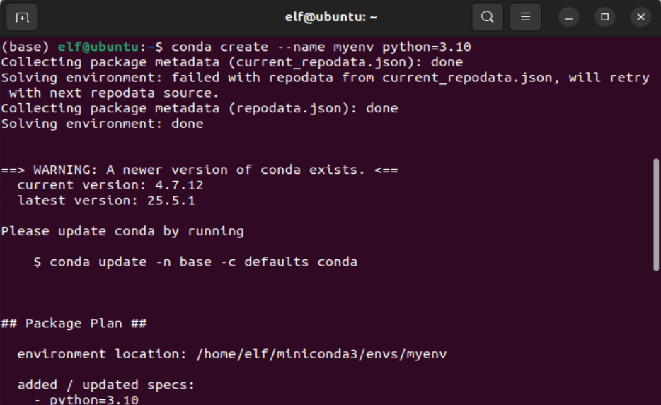 elf@ubuntu:~$ conda create --name RKLLM-Toolkit-pyth3.10 python=3.10