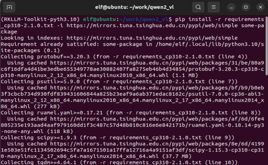 (RKLLM-Toolkit-pyth3.10) elf@ubuntu:~/work/qwen2_vl$ pip install -r requirements_cp310-2.1.0.txt -i https://mirrors.tuna.tsinghua.edu.cn/pypi/web/simple some-package