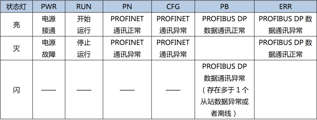 正确连接 DP从站 ,DP网络通讯正常后 ,PB 指示灯常亮。